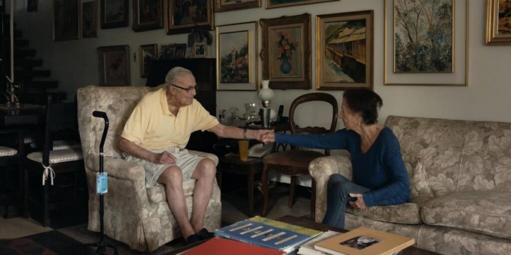 Michelangeli nos mostró su corto documental DE MEMORIA Y ESCOMBROS, el cual se estrenó en el festival internacional de Camden en Rockwell, Maine, en Octubre del 2020. Esta película nos muestra, a través de una hermosa fotografía y un relato en primera persona, la vida de dos abuelos que enfrentan la soledad con la migración de su familia.